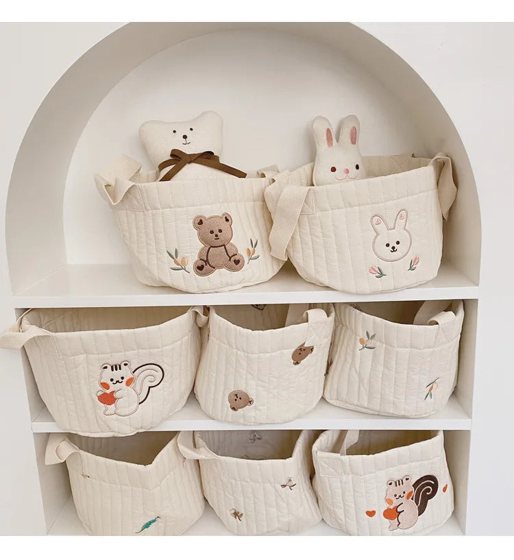 2022 New Diaper Bag Nappy Caddy Baby Items Toy Storage Bag for Newborn Crib Organizer Bedding Cotton Embroidery Mommy Bag Bebe